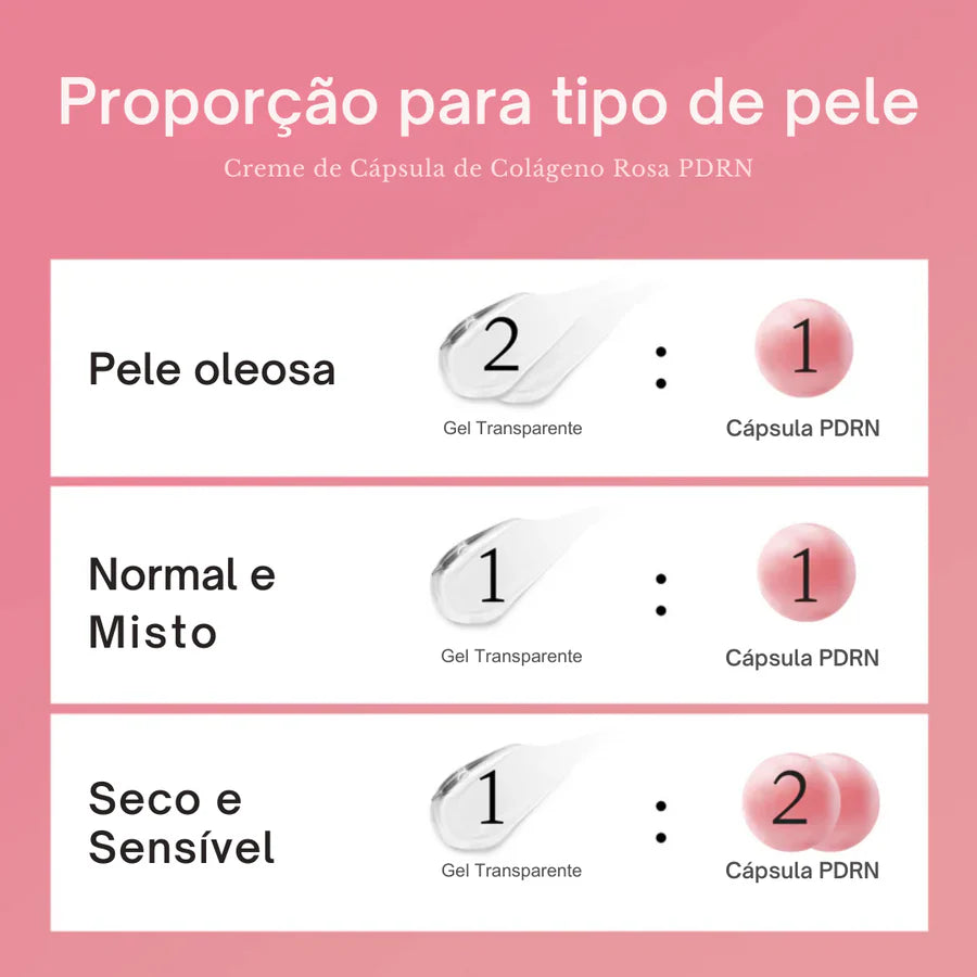 Sua fórmula exclusiva contém cápsulas de colágeno rosa que se rompem ao aplicar, liberando nutrição e hidratação concentradas diretamente na pele. O PDRN, ingrediente clinicamente reconhecido por estimular a reparação cutânea, promove a regeneração celular, melhora a elasticidade e a textura geral da pele. Sua textura cremosa, porém leve, é facilmente absorvida, deixando a pele macia, flexível e revitalizada sem sensação pesada.